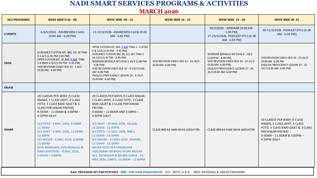 Jadual Aktiviti Mac 2026